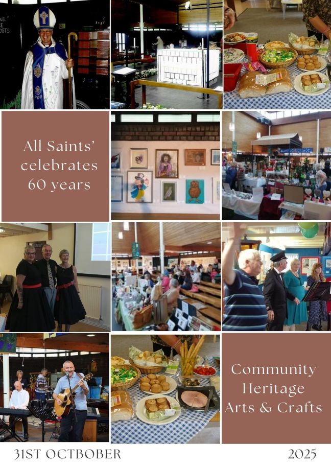All Saints’ next celebration is the 60th birthday service this weekend, on Sunday 2nd November with Bishop Julie. Do come and join us. Hope to see you there.